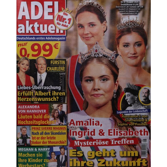 Mit Adel aktuell wissen Sie immer genauestens Bescheid, was in der Welt der Adelshäuser täglich passiert. Die monatlich erscheinende Zeitschrift offenbart Geheimnisse, Skandale und mehr aus den märchenhaften Königshöfen weltweit.