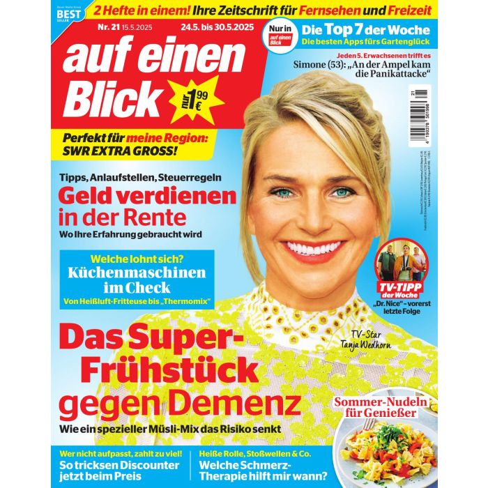 Die Auf einen Blick ist eine wöchentlich erscheinende Programmzeitschrift, die neben einem umfangreichen Programmüberblick aller größeren Fernsehsender, auch zahlreiche Reportagen rund um Prominente sowie Tipps und Tricks für das Alltagsleben bietet. Die Zeitschrift orientiert sich an den Interessensgebieten von Frauen der mittleren Generation und bietet praktische Einblicke und Informationen rund um Themen wie Kinder, Reisen, Beruf und Gesundheit.