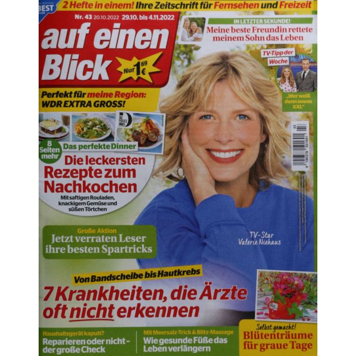Die Auf einen Blick ist eine wöchentlich erscheinende Programmzeitschrift, die neben einem umfangreichen Programmüberblick aller größeren Fernsehsender, auch zahlreiche Reportagen rund um Prominente sowie Tipps und Tricks für das Alltagsleben bietet. Die Zeitschrift orientiert sich an den Interessensgebieten von Frauen der mittleren Generation und bietet praktische Einblicke und Informationen rund um Themen wie Kinder, Reisen, Beruf und Gesundheit.