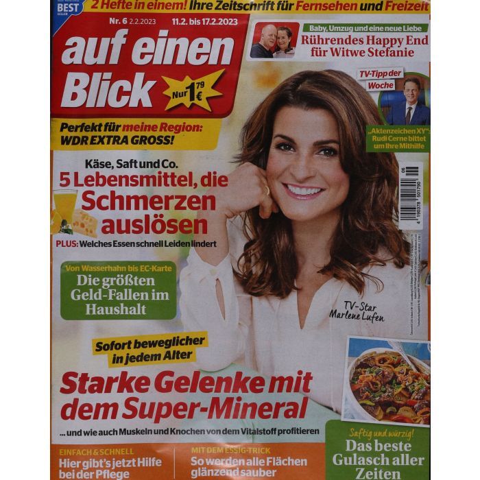 Die Auf einen Blick ist eine wöchentlich erscheinende Programmzeitschrift, die neben einem umfangreichen Programmüberblick aller größeren Fernsehsender, auch zahlreiche Reportagen rund um Prominente sowie Tipps und Tricks für das Alltagsleben bietet. Die Zeitschrift orientiert sich an den Interessensgebieten von Frauen der mittleren Generation und bietet praktische Einblicke und Informationen rund um Themen wie Kinder, Reisen, Beruf und Gesundheit.