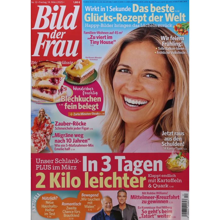 Erfahren sie mit BILD der FRAU alles rund um Themen wie Kochen, Backen, Ernährung, Diäten, Gesundheit, MODE, Schönheit, Unterhaltung und viele weitere spannende und abwechslungsreiche Themen. Das beliebte Magazin BILD der FRAU erscheint wöchentlich jeden Freitag. Das Magazin ist unterteilt IN folgenden Rubriken: Aktuelles & Schicksale, Reise & Freizeit, MODE & Schönheit, Stars & Partys, Ernährung und Gesundheit, Psychologie und Lebenshilfe, Ratgeber & Ideen und beinhaltet exklusive Porträts, Reportagen oder Interviews.