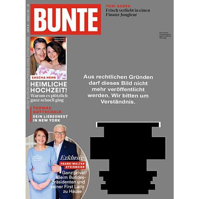 Bunte war das erste deutsche People-Magazin und ist bis heute das erfolgreichste. Wenn es um Stars geht, ist Bunte eine Institution, denn Bunte hat ein besonderes Gespür für die Stars von morgen. IN exklusiven Homestorys, persönlichen Interviews und hautnahen EVENT-Berichten erfahren Bunte-Leser IN wöchentlichem Abstand der Erscheinungsweise aktuelle und emotionale Geschichten aus dem Leben der Prominenten.