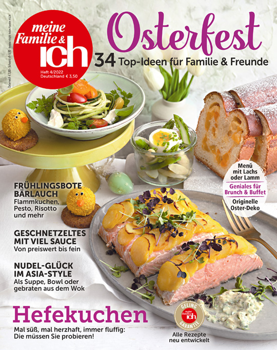 meine Familie & ich präsentiert jeden Monat neue, alltagstaugliche Rezepte, die ganz einfach nachgekocht werden können. Neben kostengünstigen und zeitsparenden Gerichten wird der Fokus auf praktische Tipps zu den Themen Gesundheit, Wohlfühlen, Wellness, Reisen, Auto, Haushalt, Geld und Recht gelegt.