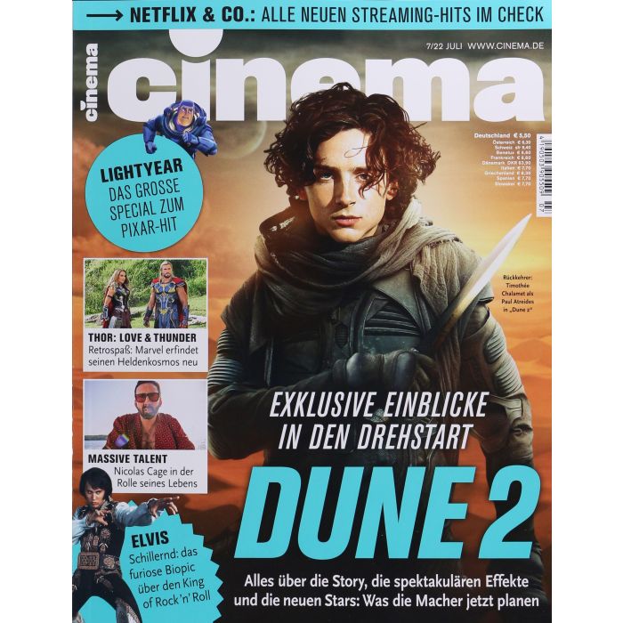 CINEMA präsentiert jeden Monat die aktuellen Hits aus der Film – und Serienwelt. Egal ob im Stream auf DVD/Blu-ray oder im Kino. Neben ausführlichen Kritiken zu den aktuellen Neustarts bietet das Magazin exklusive Hintergrundgeschichten von den Dreharbeiten, Interviews mit den Stars und den Machern, Insider-Storys über die größten Filmklassiker aller Zeiten, Vorschauen auf die Hits von morgen, sowie Reportagen zu den neuesten Trends und Innovationen im Kino und bei Amazon Prime Video, Netflix, Disney+ & Co. Dazu gibt es regelmäßig von der Redaktion zusammengestellte Bestenlisten aus den Genres ACTION, Comedy, Drama, Krimi, Fantasy und Horror, damit Sie immer den Überblick haben. CINEMA: Nur das Beste sehen.