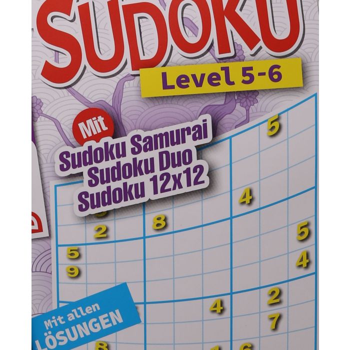 „Sudoku Level 5-6“ sorgt für Abwechslung! Neben klassischen Sudokus mit den Schwierigkeiten Level 5, Level 5-6 und Level 6 finden Sie hier auch die spannenden Varianten Sudoku Samurai, Sudoku Duo und Sudoku 12x12.