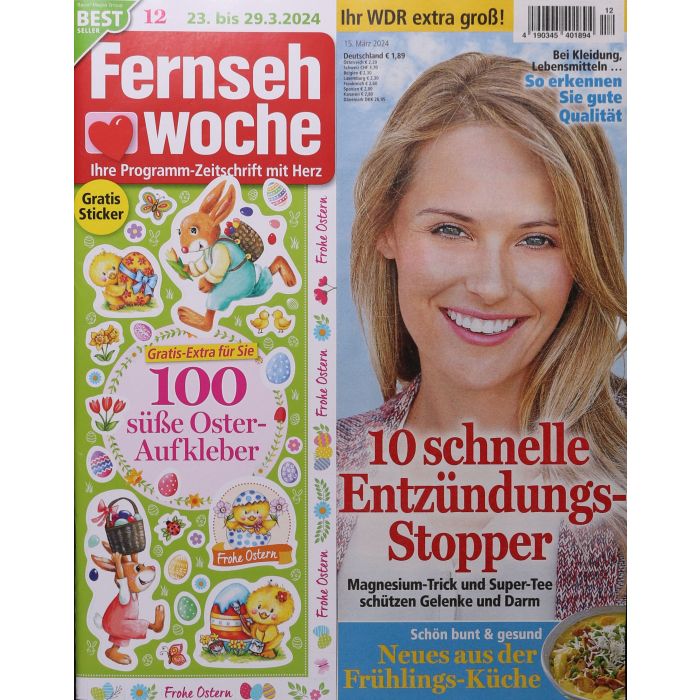 Die Fernsehwoche ist eine umfassende, wöchentliche Programmzeitschrift für die ganze Familie. Das aktuelle und ausführliche Fernsehprogramm wird durch eine vielseitige Themenwelt ergänzt. Spannende Reportagen und nützliche Tipps zu Alltagsthemen wie Geldanlagen, Haushalt, Beauty, Wellness und Genuss stehen im Fokus.