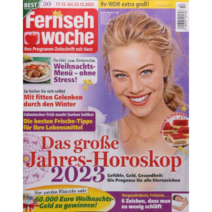 Die Fernsehwoche ist eine umfassende, wöchentliche Programmzeitschrift für die ganze Familie. Das aktuelle und ausführliche Fernsehprogramm wird durch eine vielseitige Themenwelt ergänzt. Spannende Reportagen und nützliche Tipps zu Alltagsthemen wie Geldanlagen, Haushalt, Beauty, Wellness und Genuss stehen im Fokus.