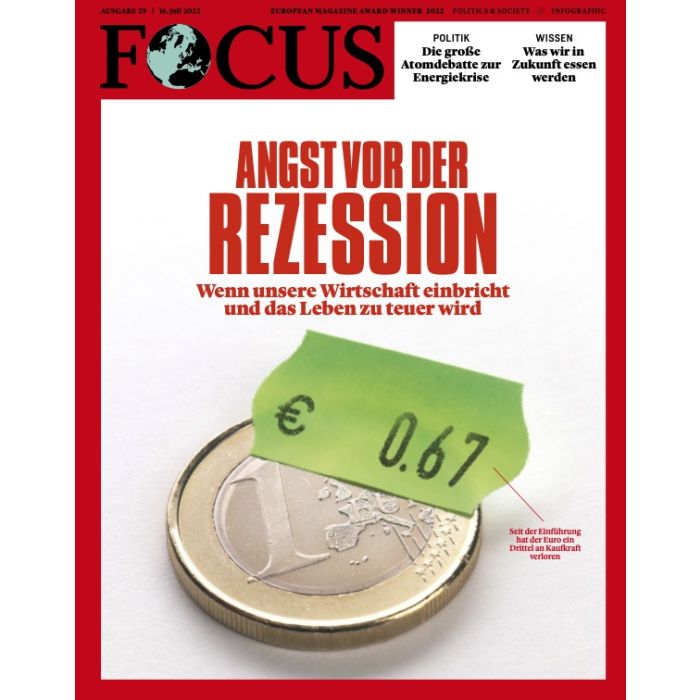 Der „FOCUS“, eines der reichweitenstärksten Nachrichtenmagazine Deutschlands, erscheint wöchentlich und beschäftigt sich mit top aktuellen Themen u.a. aus den Bereichen Politik, Wirtschaft, Gesellschaft und Gesundheit. Den Leser des modern gestalteten Periodikums erwarten prägnante Artikel, der „FOCUS“ ist dabei konstruktiv kritisch und zukunftsgewandt. Dabei wird großen Wert daraufgelegt, dass die Grafiken für die komprimierten und klar formulierten Texte sprechen, diese unterstreichen und die relevante Thematik vermitteln. Herstellerinformationen: Hubert Burda Media Holding Kommanditgesellschaft Arabellastraße 23 , 81925 München E-Mail/URL: info@hubert-burda-media.com