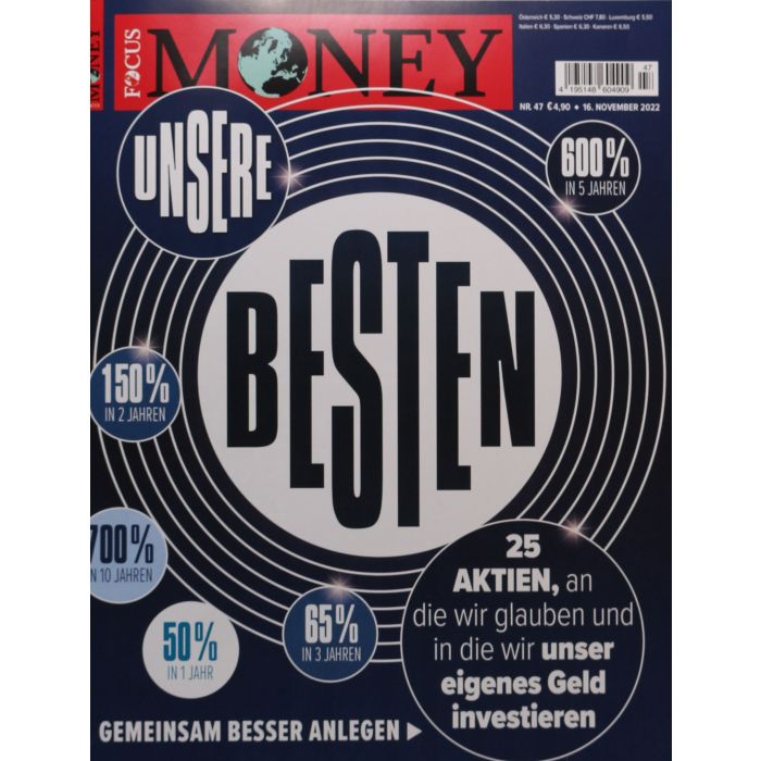 Hochwertig konstruierte Artikel liefern neben klassischen Wirtschaftsthemen auch kritische Analysen sowie Einblicke in die Welt der Finanzen. Charakteristisch sind die prägnant gestalteten Texte mit anschaulichen Grafiken, die dem Leser dazu dienen, die behandelte Thematik schnell zu erfassen. Wenn Ihr Interesse im Bereich des modernen Finanzmanagements liegt, ist „FOCUS Money“ genau die richtige Zeitschrift für Sie.