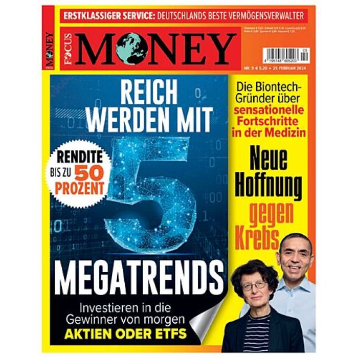 Hochwertig konstruierte Artikel liefern neben klassischen Wirtschaftsthemen auch kritische Analysen sowie Einblicke in die Welt der Finanzen. Charakteristisch sind die prägnant gestalteten Texte mit anschaulichen Grafiken, die dem Leser dazu dienen, die behandelte Thematik schnell zu erfassen. Wenn Ihr Interesse im Bereich des modernen Finanzmanagements liegt, ist „FOCUS Money“ genau die richtige Zeitschrift für Sie.