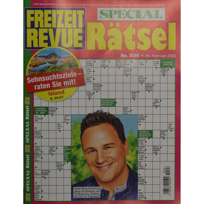 Der Topseller FREIZEIT REVUE Special Rätsel enthält eine einzigartige Mischung vom amerikanischen Kreuzworträtsel bis zum Zahlenkreuzworträtsel. Zahlreiche Schwedenrätsel zu Themen wie Städte und Länder, Flora und Fauna und die Großen der Welt bieten auf 52 Seiten eine abwechslungsreiche, knifflige Rätselpalette von leicht bis schwer. Die Favoriten Trickkiste, Achterbahn, Knobelkasten und Querdenker lassen keine Wünsche übrig.