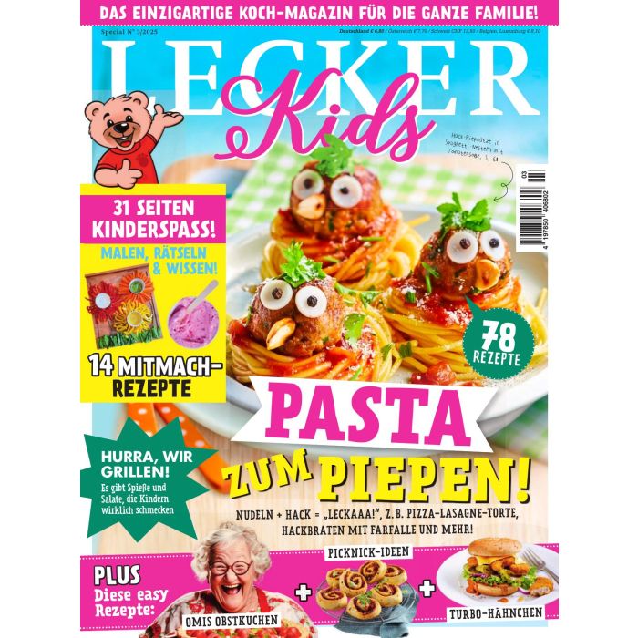 LECKER KIDS 1/2025 "Pasta zum Piepen" Das einzigartige Kochmagazin für Klein und Groß - Malen, Rätseln, Mitmach-Rezepte für Kinder