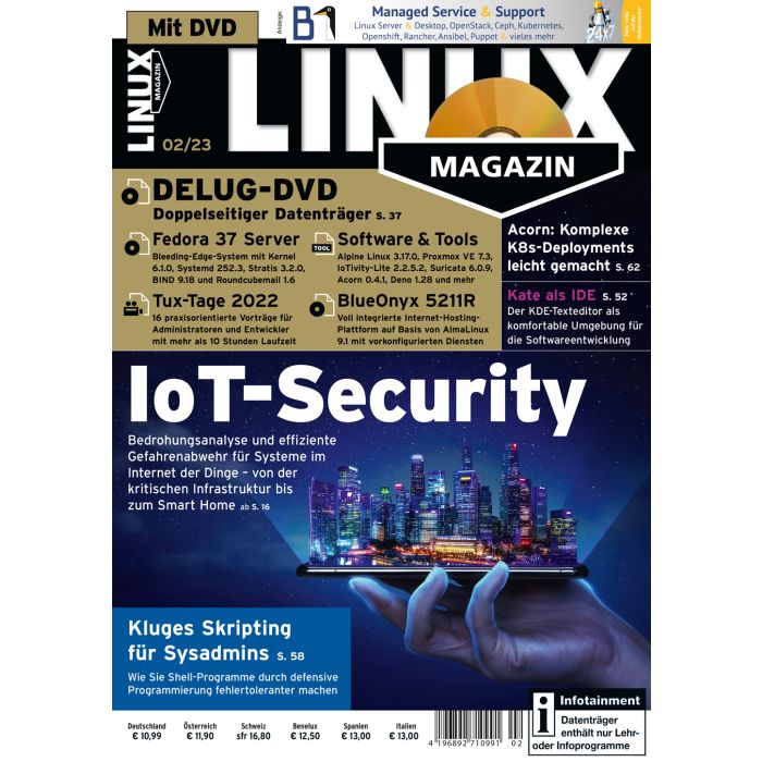 Linux-Magazin DVD 2/2023 "IoT Security / DVD: Fedora 37 Server, Tux-Tage 2022, BlueOnyx 5211R"