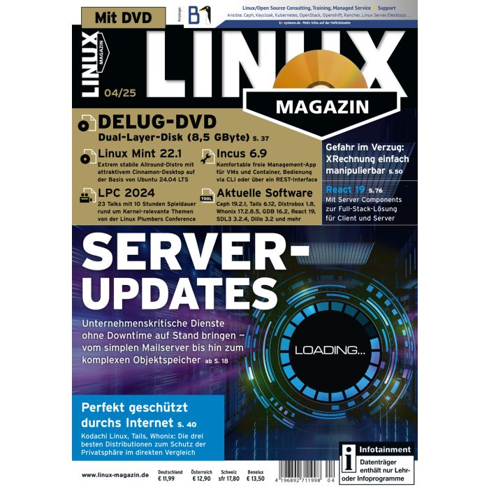 Linux-Magazin DVD 4/2025 "Server-Updates / DVD: Film |Ada & Zangemann|", Linux Mint 22.1""