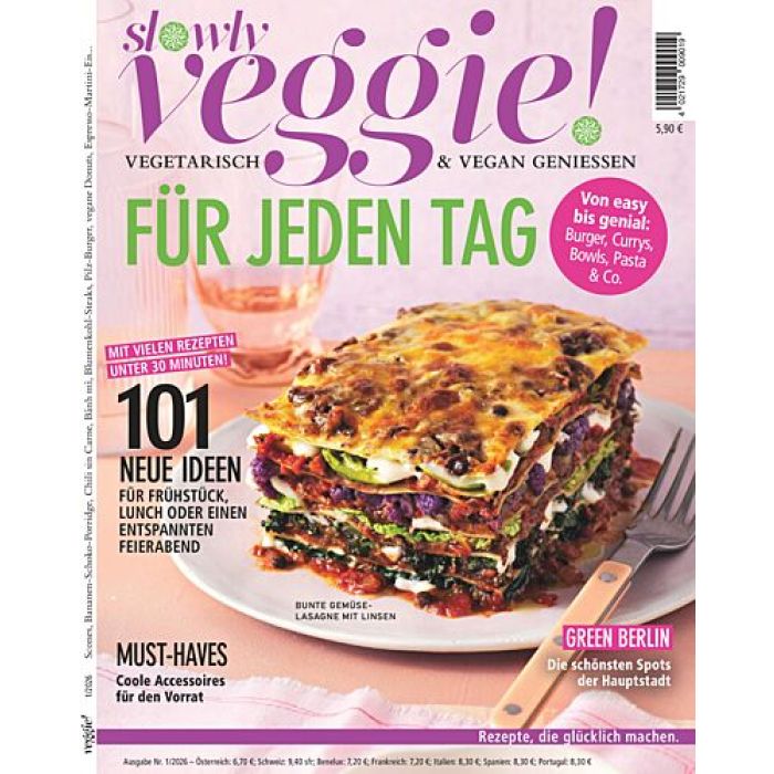 Mit der Verwendung von einfachen Zutaten und einer simplen Zubereitungen bietet slowly veggie! auch für Nicht-Vegetarier frische und vollwertige Alternativen für jeden Tag. Profitieren Sie außerdem von saisonalen Wohn- und Deko-Inspirationen sowie aktuellen Reise-Anregungen.