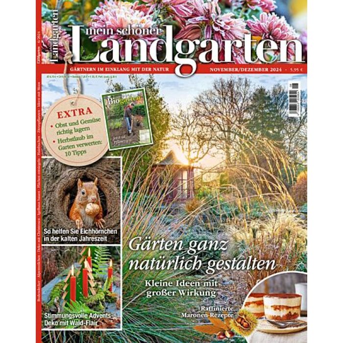 Ein Garten-Magazin für das persönliche Paradies unter freiem HimmelMein schöner Landgarten richtet sich an eine Leserschaft aus naturbegeisterten Hobby-Gärtnern, die gerne mehr über Pflege und Pflanzen erfahren möchten. Viele interessante Informationen zeigen wie Sie nachhaltig pflanzen und Ihre Beete in voller Pracht erblühen lassen können.Aufregende Tipps zeigen Ihnen den besten Weg um aus Ihrem Garten eine wunderschöne Oase zu schaffen.Leserinnen und Leser dieses Magazins lieben ländliche Gärten und schätzen die Schönheit der Natur.Schöne Ideen zum Dekorieren lassen Sie selbst kreativ werden, köstliche Rezepte lassen sich gut mit Produkten aus Ihrem eigenen Garten kombinieren und Berichte über Natur und Tier bringen Ihnen die Umwelt näher.