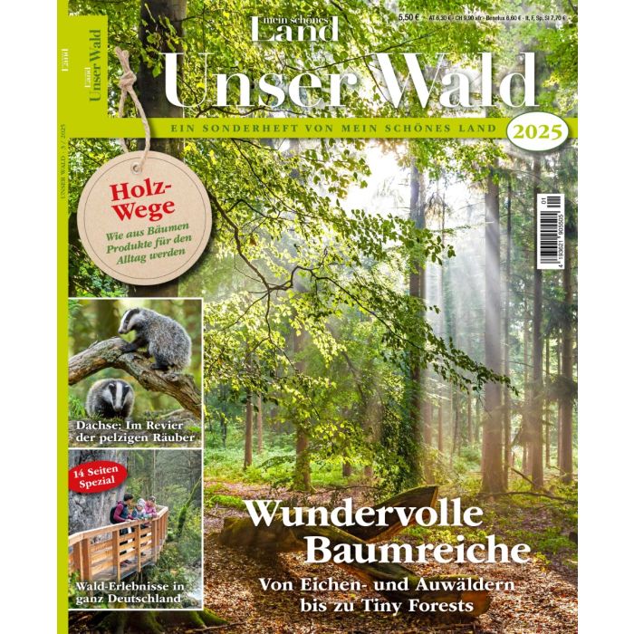 Das 12-seitige "Erlebnis-Spezial" im Heft präsentiert die spektakulärsten Baumwipfelpfade zwischen Alpen und Ostsee und gibt Tipps für mystische Wanderziele in ganz Deutschland.