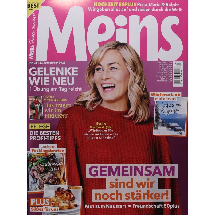 Die Damenwelt hat sich gewandelt - das spiegelt auch die monatliche Zeitschrift Meins wider, die sich die bunte und lebensfrohe Welt der modernen Frau ab 50 zum Schwerpunkt gemacht hat.