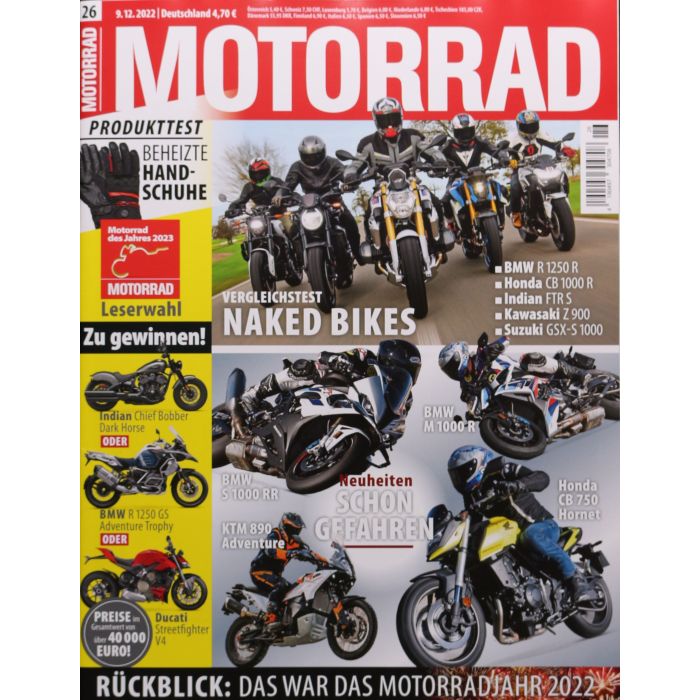 Nicht ohne Grund ist MOTORRAD eine Instanz unter den Motorradzeitschriften. Sie besticht durch ein thematisches Spektrum, das in seiner journalistischen Qualität einzigartig ist und alle zwei Wochen einen aktuellen Marktüberblick gibt.