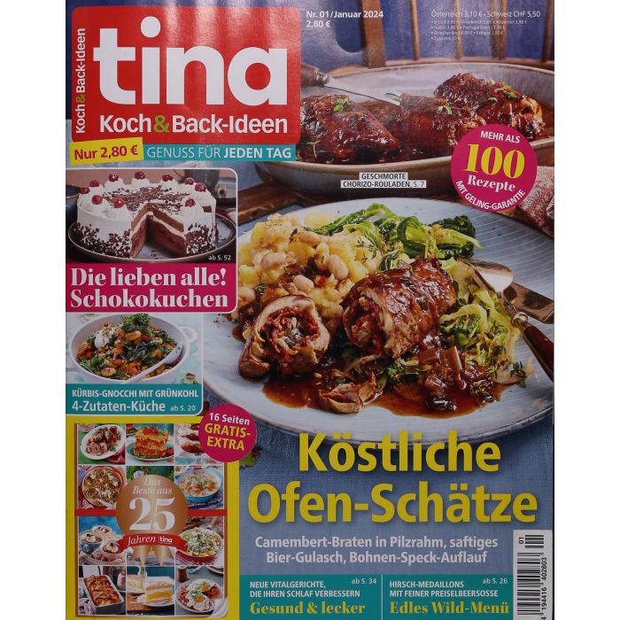 Für so manche Frau sind die Aktivitäten in der Küche nicht nur Alltag, sondern Entspannung und Freude pur, um Familie und Freunde mit Genussmomenten zu verwöhnen. Als monatliches Fachmagazin bietet tina Koch & Backideen die optimale Anregung, die eigenen Fertigkeiten in der Küche zu erweitern und völlig neue kulinarische Köstlichkeiten für die Lieben zu zaubern.