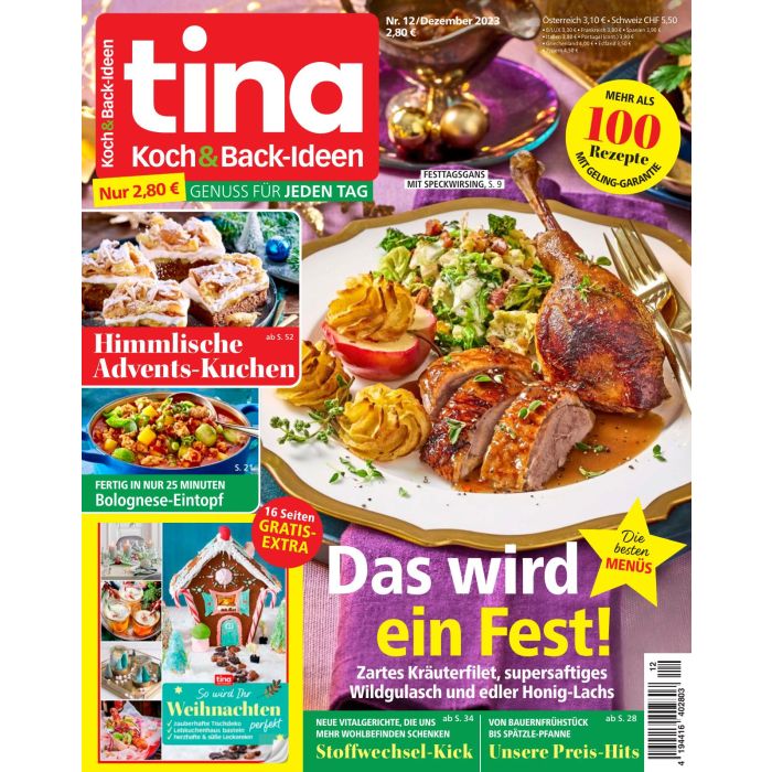 Für so manche Frau sind die Aktivitäten in der Küche nicht nur Alltag, sondern Entspannung und Freude pur, um Familie und Freunde mit Genussmomenten zu verwöhnen. Als monatliches Fachmagazin bietet tina Koch & Backideen die optimale Anregung, die eigenen Fertigkeiten in der Küche zu erweitern und völlig neue kulinarische Köstlichkeiten für die Lieben zu zaubern.