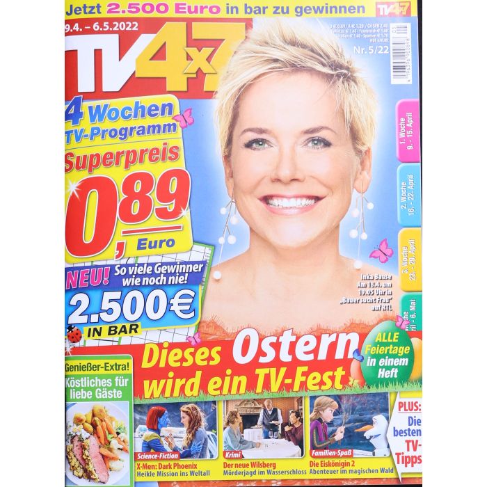 Mit der Fernsehzeitschrift TV 4x7 im praktischen Pocket-Format bekommen Sie eine Gesamtübersicht über das Fernsehprogramm der nächsten 4 Wochen. In einer tollen Übersicht der wichtigsten TV-Sender verpassen Sie keine Highlights mehr und sehen immer genau, wann Ihre Lieblingsfilme und Lieblingsserien ausgestrahlt werden. Die Redaktion zeigt Ihnen interessante TV-Tipps, die Sie nicht verpassen sollten.