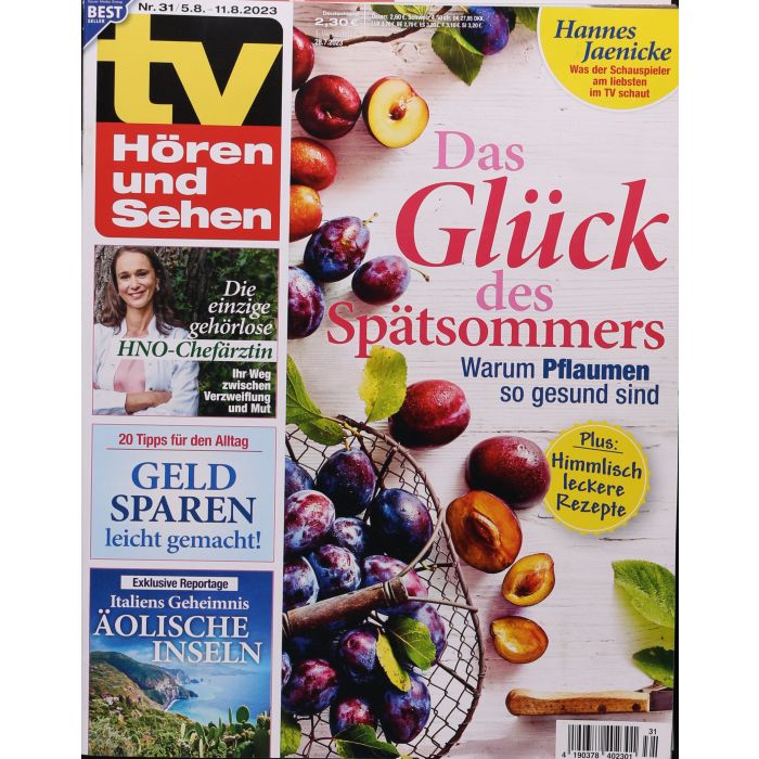 Die Leserinnen und Leser erfahren in der TV Hören und Sehen welche spannenden Filme und Dokumentationen in der nächsten Woche im Fernsehen ausgestrahlt werden!TV Hören und Sehen ist eine wöchentliche Programmzeitschrift, die zusätzlich informative Berichte und Faszinierende Fotos über verschiedene Themen wie Gesundheit, Reisen oder Natur enthält.