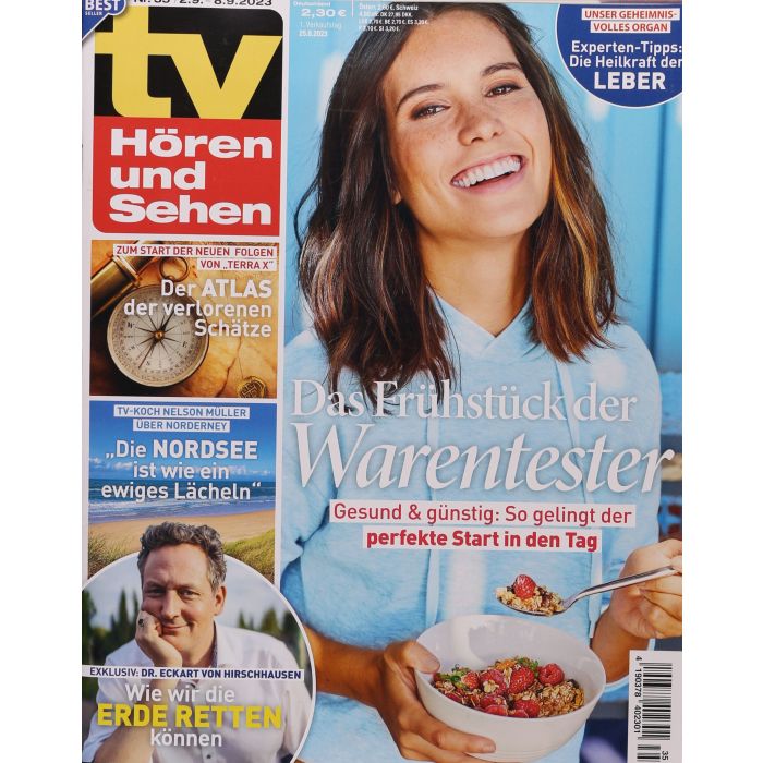 Die Leserinnen und Leser erfahren in der TV Hören und Sehen welche spannenden Filme und Dokumentationen in der nächsten Woche im Fernsehen ausgestrahlt werden!TV Hören und Sehen ist eine wöchentliche Programmzeitschrift, die zusätzlich informative Berichte und Faszinierende Fotos über verschiedene Themen wie Gesundheit, Reisen oder Natur enthält.