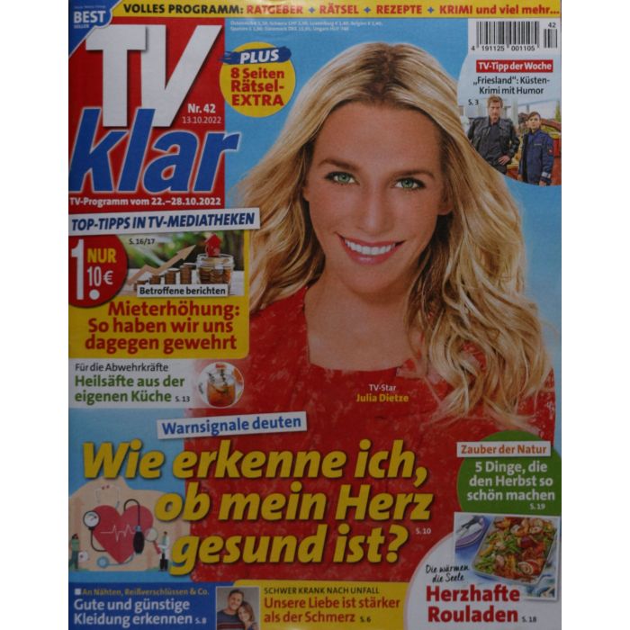 TV klar bietet seinen Leserinnen und Lesern viele ergänzende Informationen IN zahlreichen Servicerubriken. Ratgeber aus den Bereichen Haushalt, MODE, Familie oder Recht stehen ebenso bereit wie verschiedene Gewinnspiele und Rätsel, die Bargeld, Reisen oder Geräte der Unterhaltungselektronik IN Aussicht stellen.