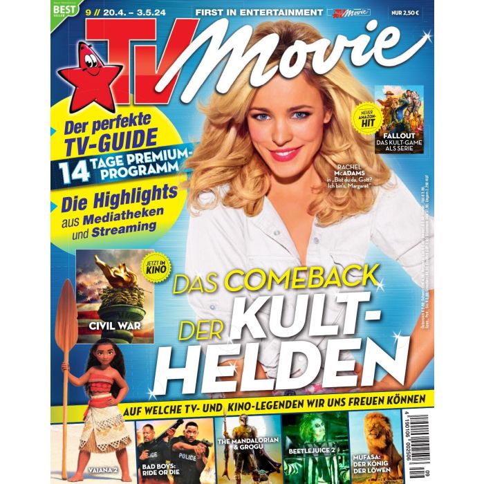 Umfangreiche Programmzeitschrift mit vielen HintergrundinformationenTV Movie gehört zu den etabliertesten Programmzeitschriften in Deutschland, die einen umfassenden Überblick über das Fernsehprogramm von 14 Tagen schafft. Neben der ausführlichen Präsentation von Dutzenden TV-Sendern erhalten die Leser des Magazins ergänzende Informationen zu den Filmen, aktuellen Dreharbeiten und den beteiligten Schauspielern.Bei Interesse an einem neuen Fernseher oder weiteren Geräten der Unterhaltungselektronik bietet das Magazin stetig Informationen über Produktneuheiten. Verschiedene Rätsel und Gewinnspiele runden das Magazin ab und bieten Gewinnmöglichkeiten, z. B. von hochwertigem Fernsehequipment.