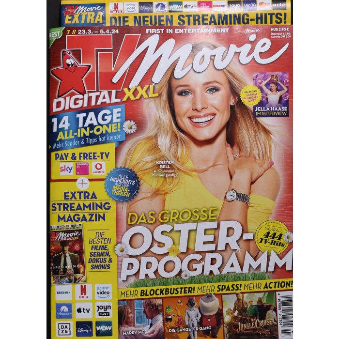 TV Movie Digital XXL – Das Fernsehmagazin für zwei WochenEine Zeitschrift die sich an alle Filmeliebhaber richtet und eine aktuelle Programmübersicht sowohl aus dem Free-TV als auch im Pay-TV bietet. Das Heft gibt nicht nur einen Überblick über aktuelle TV-Highlights, auch Interviews mit Stars & Sternchen oder interessante Informationen über Gesundheit und Alltag werden hier geboten. Durch das moderne Design und viele interessante Geschichten und Reportagen überzeugt es vor allem bei den jungen und junggebliebenen Lesern.
