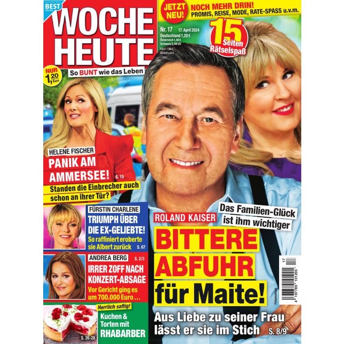 Die Woche Heute ist eine Zeitschrift für Frauen IN der Mitte des Lebens, die von einem wöchentlichen Magazin gleichermaßen unterhalten und informiert werden möchten. Einblicke IN das Leben der Prominenten werden ebenso geboten wie Reisereportagen, köstliche Rezepte sowie viele praktische Tipps für den Alltag.