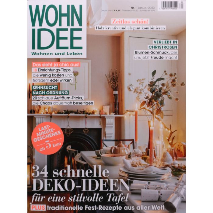 Inspiration für neue Wohnideen Die Zeitschrift Wohnidee bietet jeden Monat aktuelle Tipps und Trends zur individuellen Wohnraumgestaltung. Ob kreative DO-it-Your-Self-Anleitungen oder Vorschläge zu Modefarben im Wohnbereich: Mit dem optisch wie inhaltlich ansprechenden Magazin finden Leser regelmäßig neue Anregungen, die sich für vollständige Umgestaltungen von Haus und Wohnung ebenso eignen wie für das gewisse Etwas, dass dem eigenen Wohn- und Einrichtungsstil die optimalen Akzente verleiht. Optimistisches Lebensgefühl im eigenen Zuhause vom kleinen Zimmer bis zum großen Haus - Das vermittelt Wohnidee-Magazin IN kompetenter, kreativer Weise.